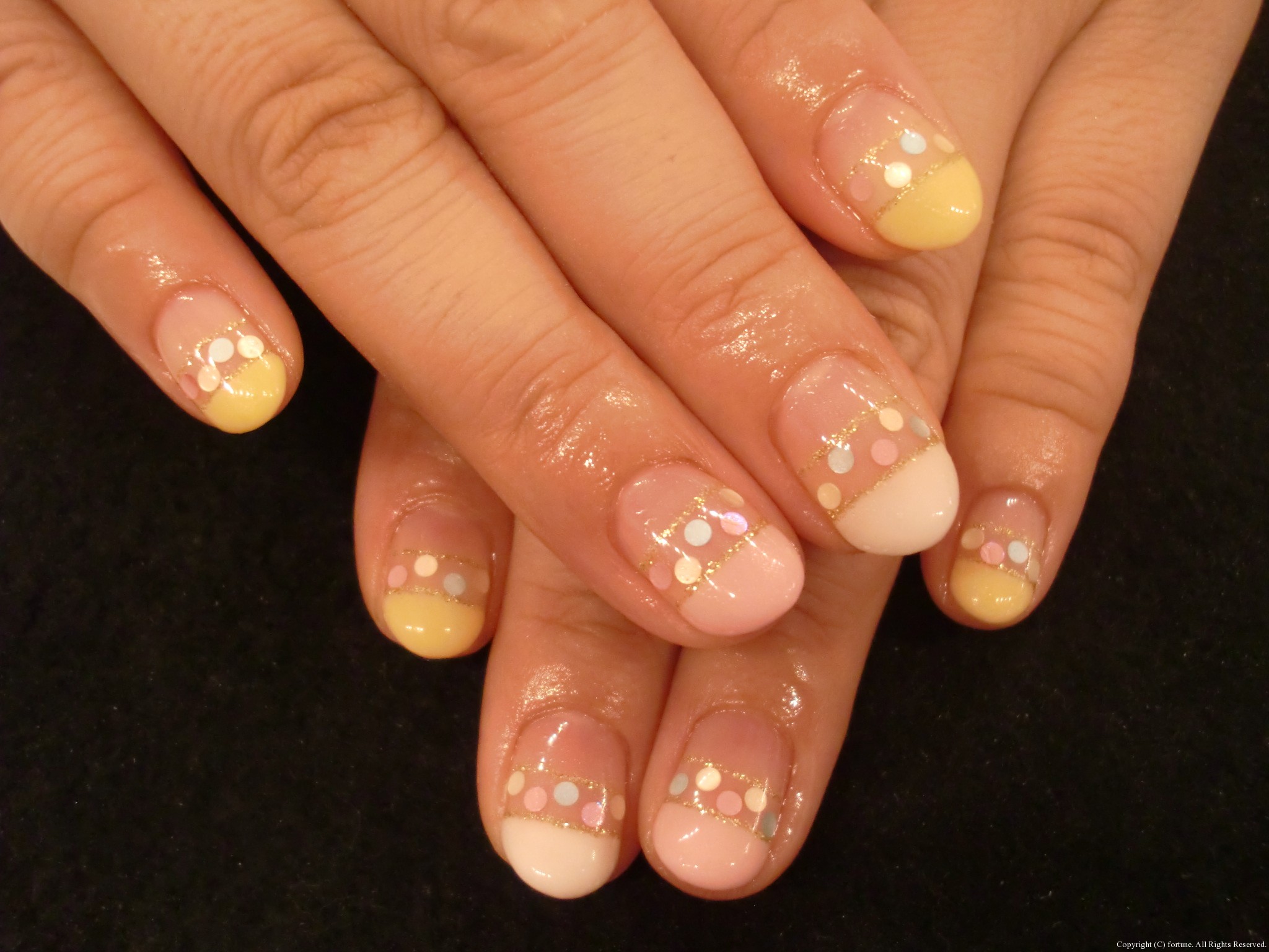 ホログラムアート♪ あっという間に8月も終わりですね! ピンク・白・黄色をつかったフレンチ+ホログラムデザインです★ こちらは変形逆フレンチ+ホログラムデザイン★ 少し秋らしい感じに仕上がりました♪ 来月もお得なサービスメニューなどがございますので、いろいろな ネイルをお楽しみ下さいね。 AIKO