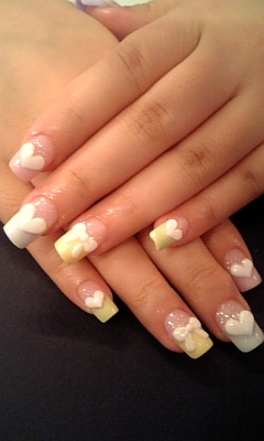 3Dのハートを乗せて薬指はリボンに♪