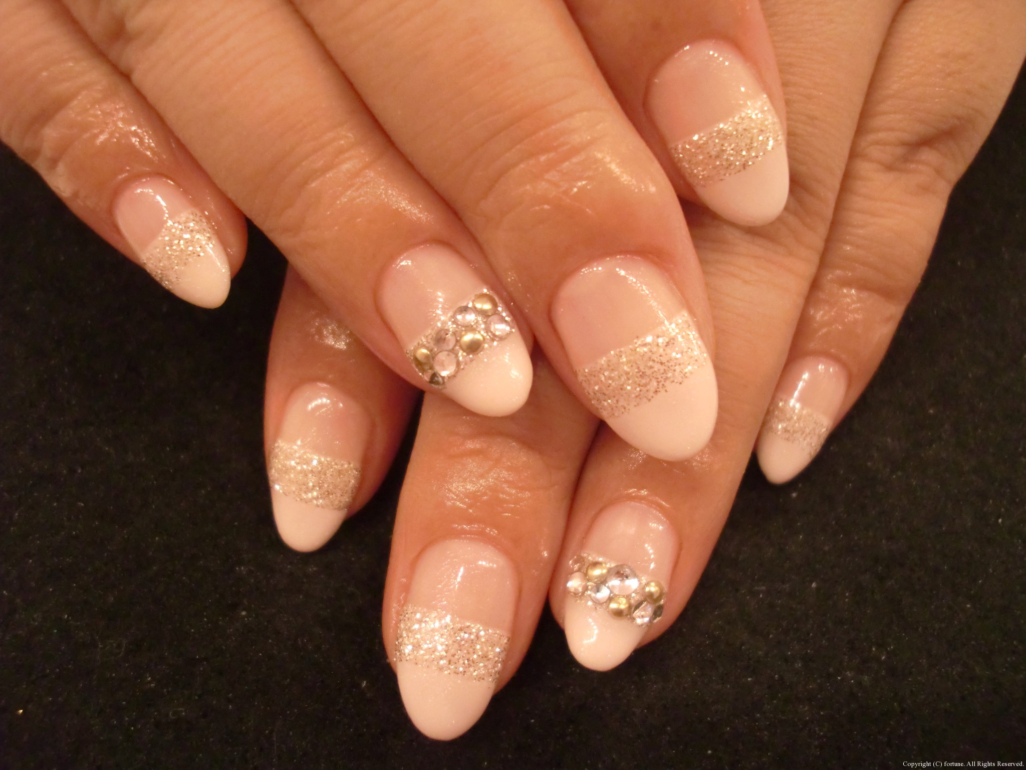 真っすぐのフレンチにラメとストーンでキラキラに♡