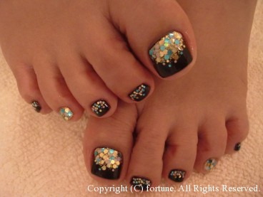 黒ベースにキラキララメとホログラムが目立ちます☆