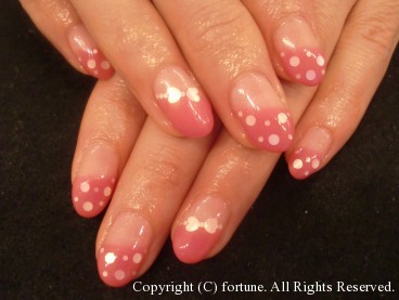 ピンク♪ドット♪ 暖かくなってくるとビビットなピンクがよくでます! 斜めフレンチにドットとリボンが可愛い人気デザイン♡ スクエアバージョン☆ そろそろサンダルが履けそうですね♡ FOOTアートの新作も増えたので、皆様是非お試し下さい! 可愛いデザインが続々登場です♪ AIKO 〜・〜・〜・GW前のご予約について〜・〜・〜 GW前はご予約が混み合いますので、ご予定が決まりましたら お早めのご予約をお勧めいたします。 皆様からのご連絡をお待ちしております。 fortune