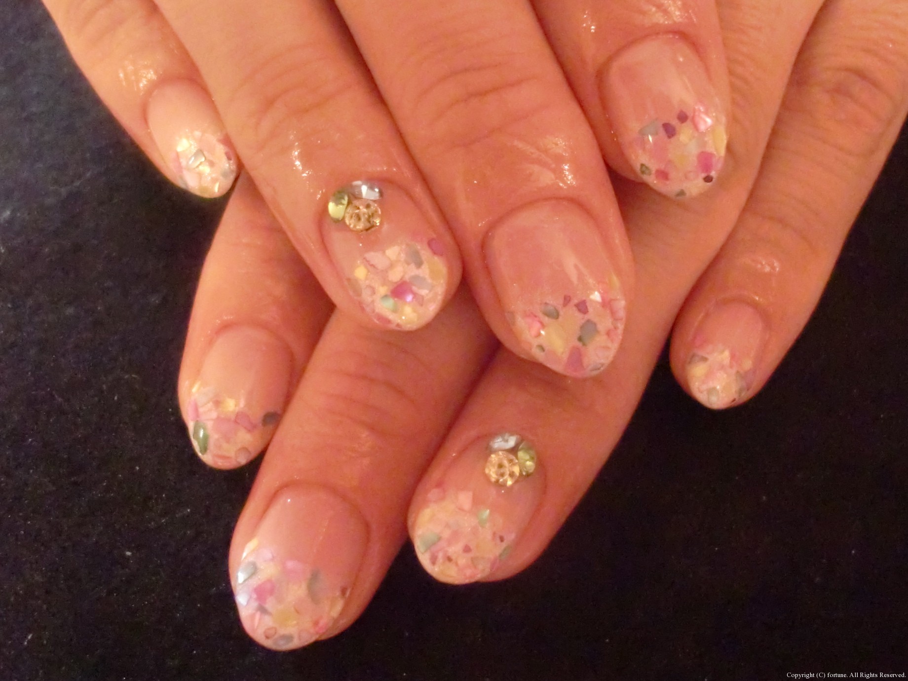 ぽかぽか陽気 今日は暖かいですね♪ 旅行される方も、のんびり過ごされる方も、ネイルは可愛くしておきましょう! 斜めフレンチにホログラムでキラキラ華やかに♡ 白パールの上に、シェル(貝)を4色散りばめてカラフルに♡ カラフルシェルをポイントに、シンプルフレンチ♡ 可愛いネイルで素敵な休日を♪ NAOKO