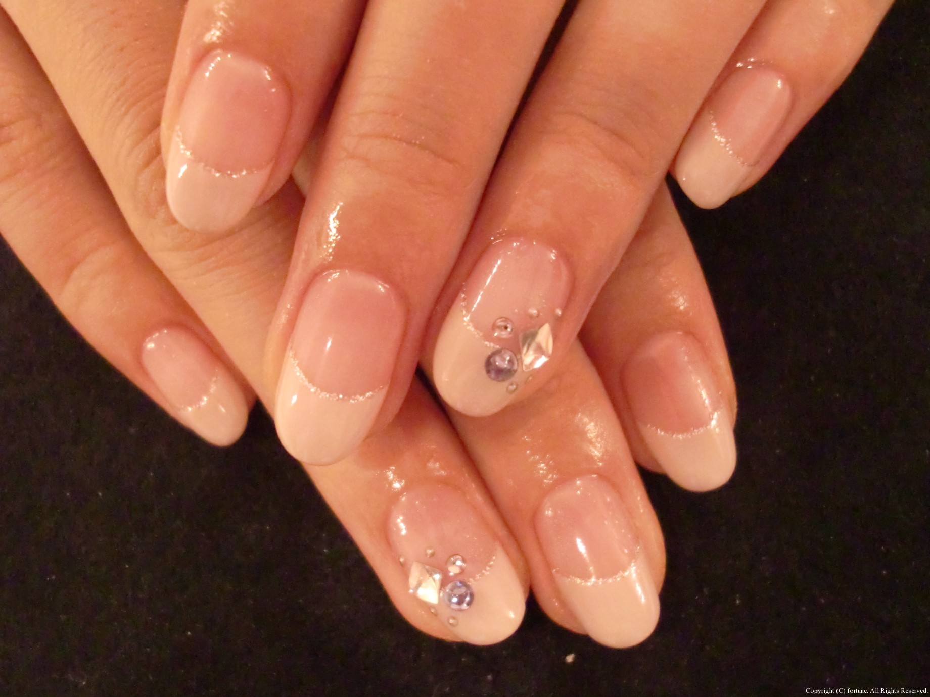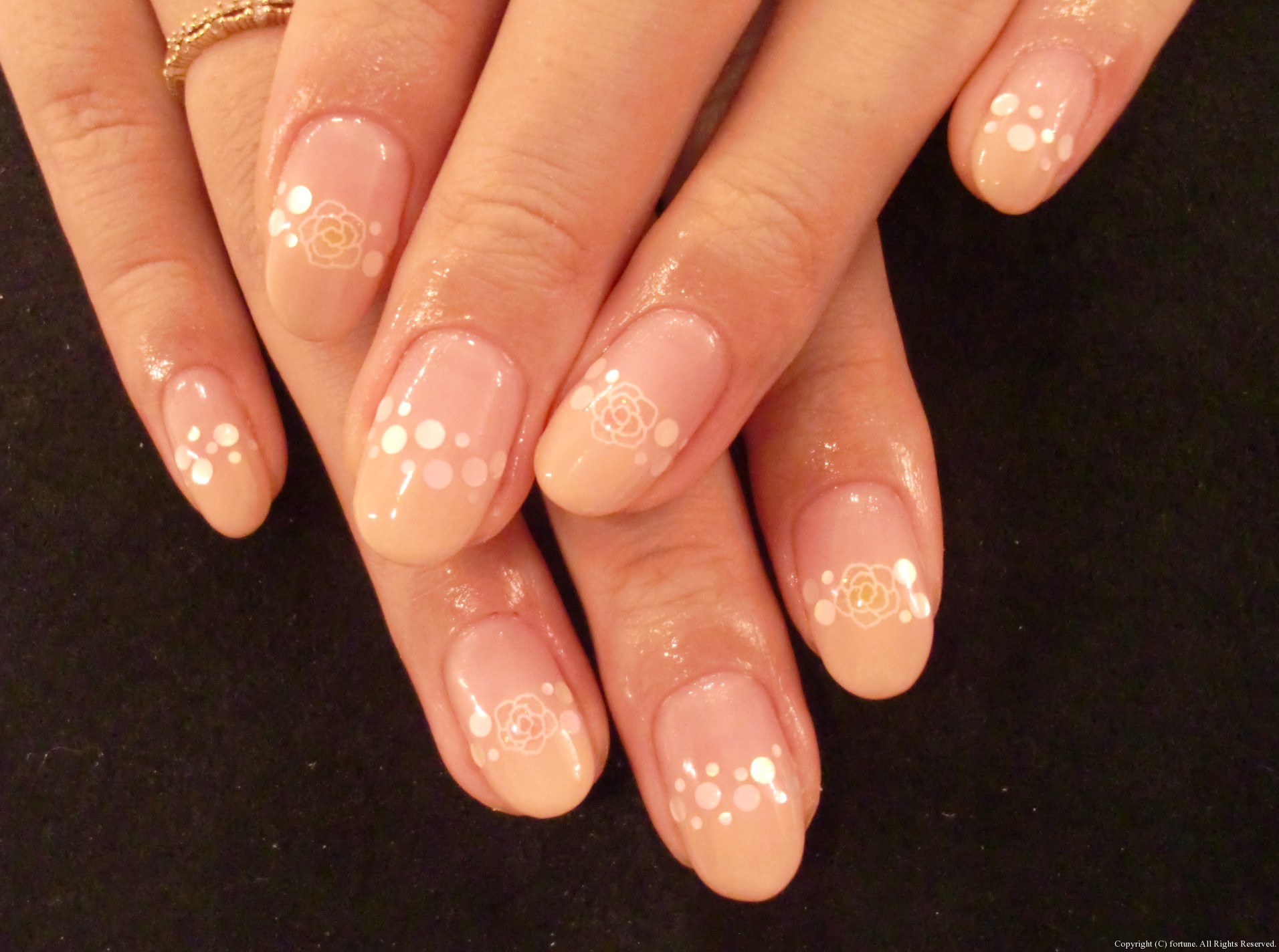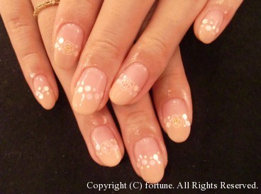 ナチュラルアート 肌に馴染むベージュカラーでグラデ♪白バラアートも可愛いです♡ こちらもベージュでフレンチに♪薬指がストーンでポイント♡ お仕事でネイルを派手にできなくても、ポイントでストーンをつけるだけで ぐっと華やかになりますよ♪ 私はフットネイルをPOPな感じにしました☆ 親指のニコちゃんがポイントです♡ NAOKO