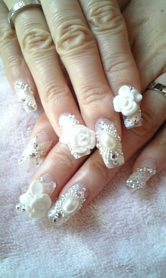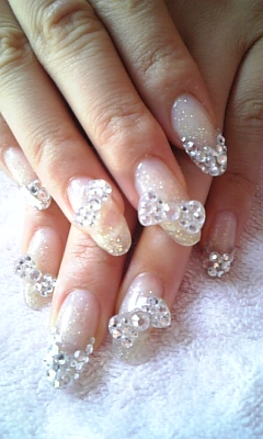 ブライダル☆ネイル 先日、結婚式をしました♪あい子君渾身の作品です☆ 花嫁ネイルでーす!!! あい子君もキラッキラ☆のリボンアートでかわゆいです♪ あい子君はお呼ばれネイルでーす♪ 10月11月はブライダルが多いですから皆様もお呼ばれスタイルに 磨きをかけて下さいね☆ JUN
