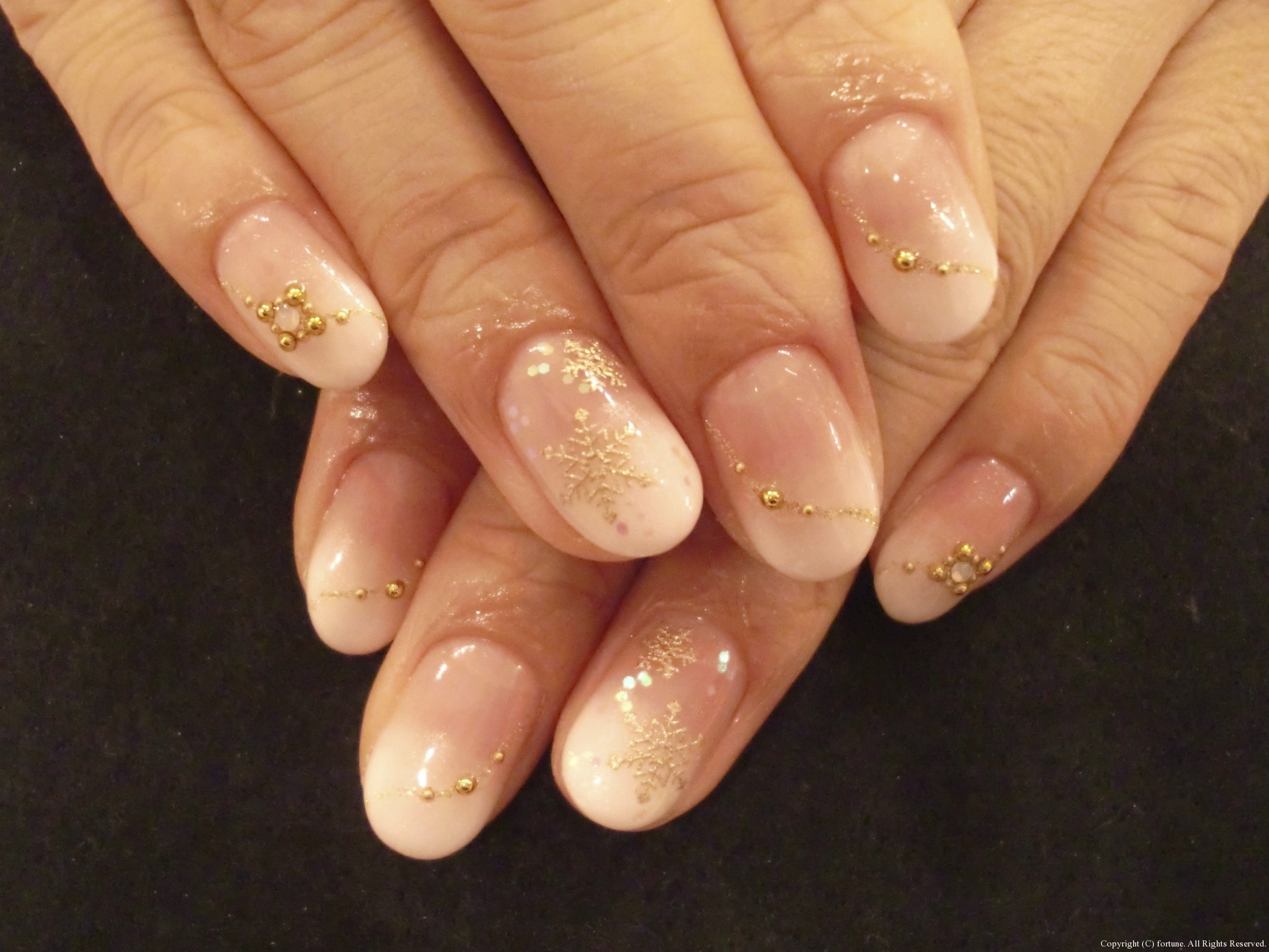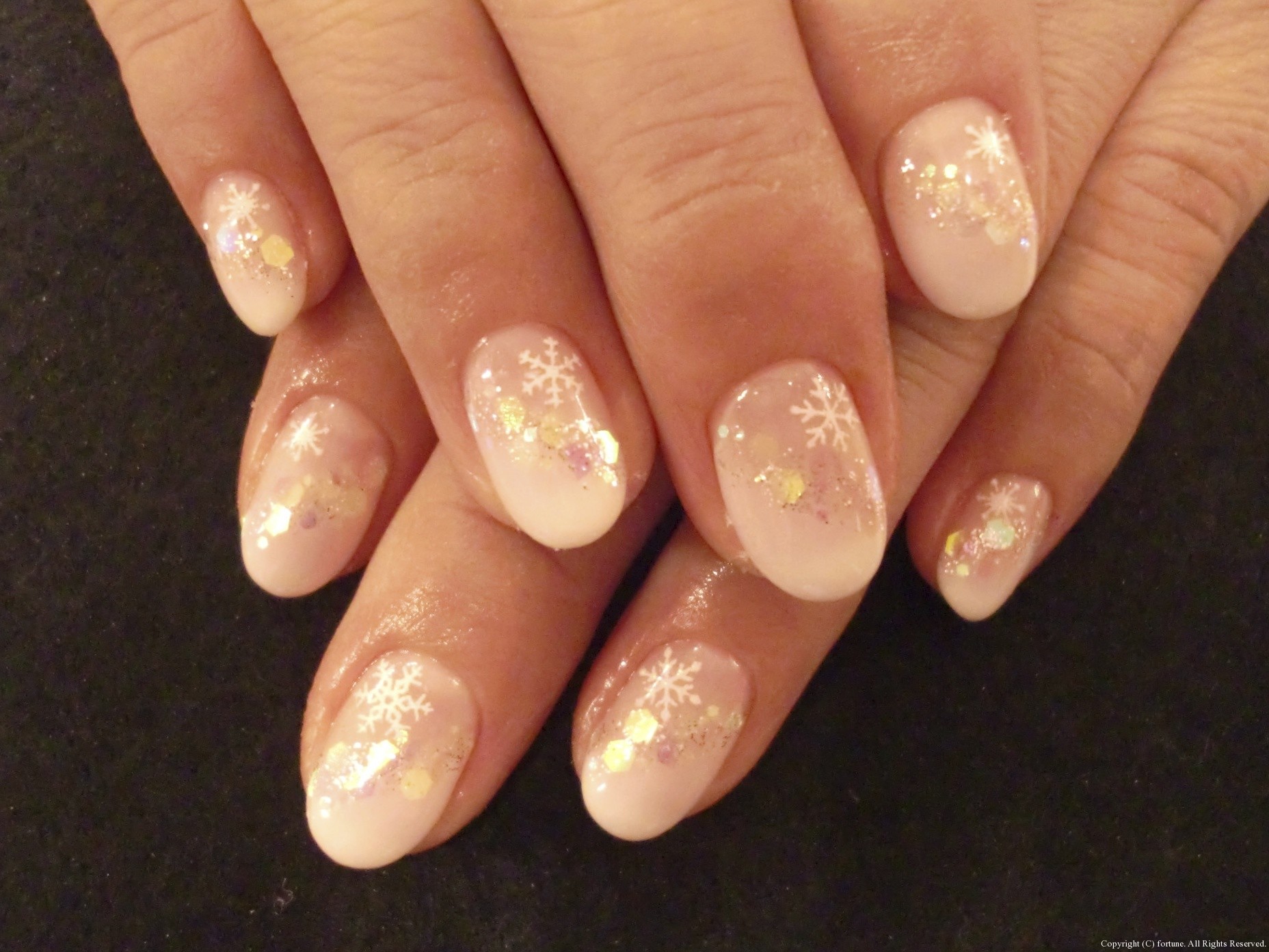 こちらも白グラデに雪♪ラメとホログラムでキラキラに♡