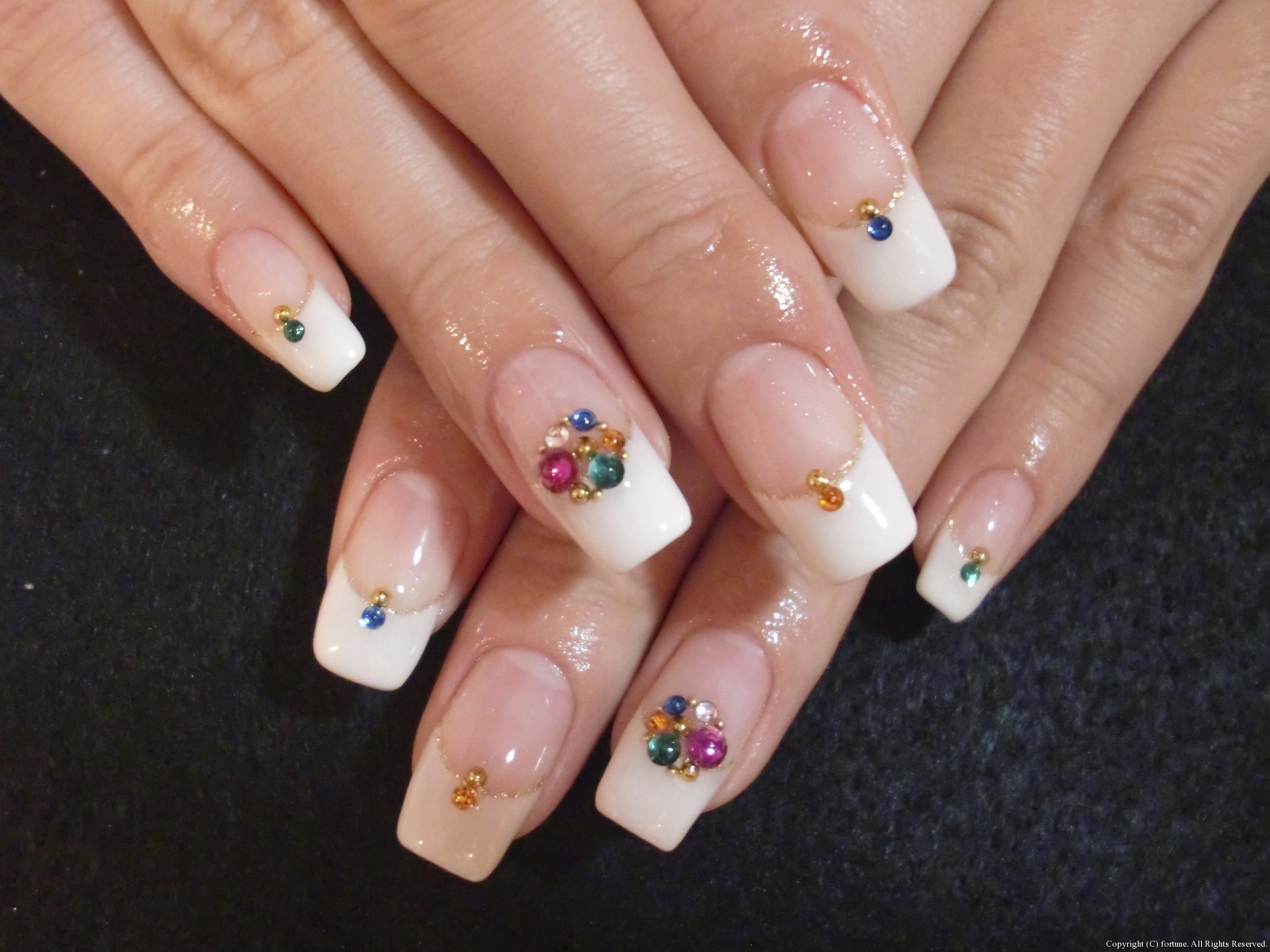 こちらは白フレンチにカラフルなストーンで華やかに♪