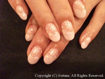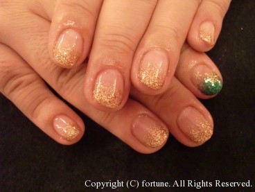 ゴールド&グリーンのラメグラに雪のシールでクリスマスっぽく★