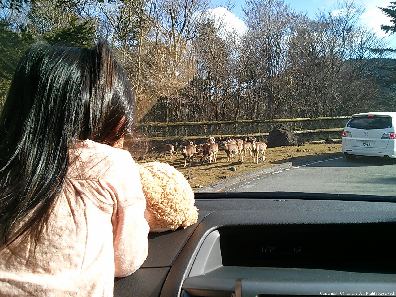 車を降りて外のふれあえる動物でも観ようか〜なーんて行ってみましたがこのポニーちゃん達の行列で写真を撮り、なでなでして、富士山のふもとだけある寒さに5分も保たずそそくさと車内に戻りました(寒)でもやっぱり動物触っちゃいます♡かわいいしめったに触れない感触がたまりません♡