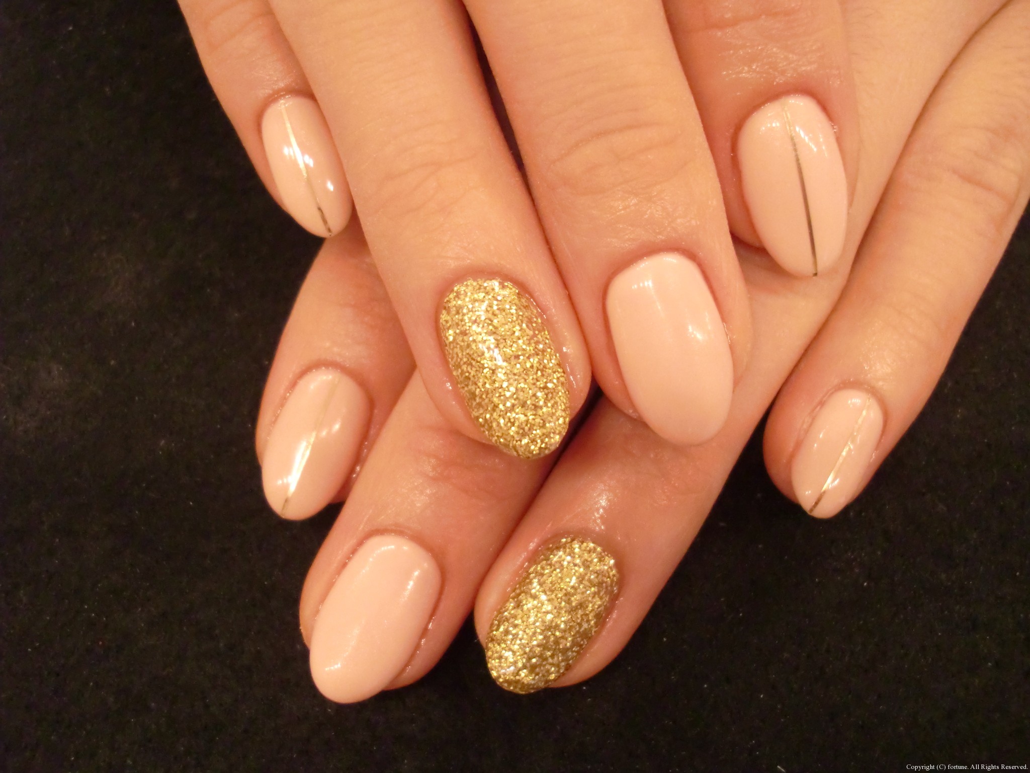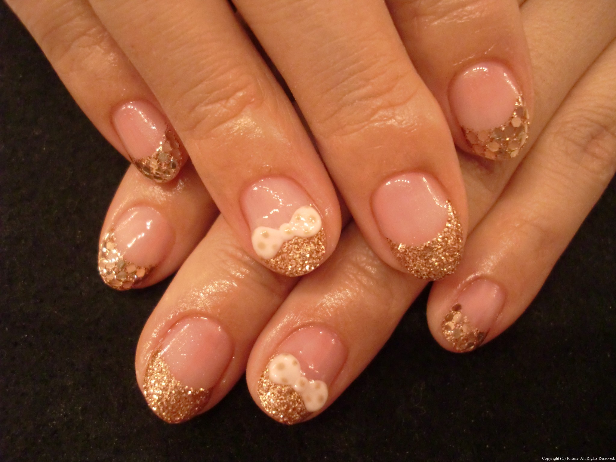 シャンパンゴールドのフレンチに3Dのリボンが可愛いです♡