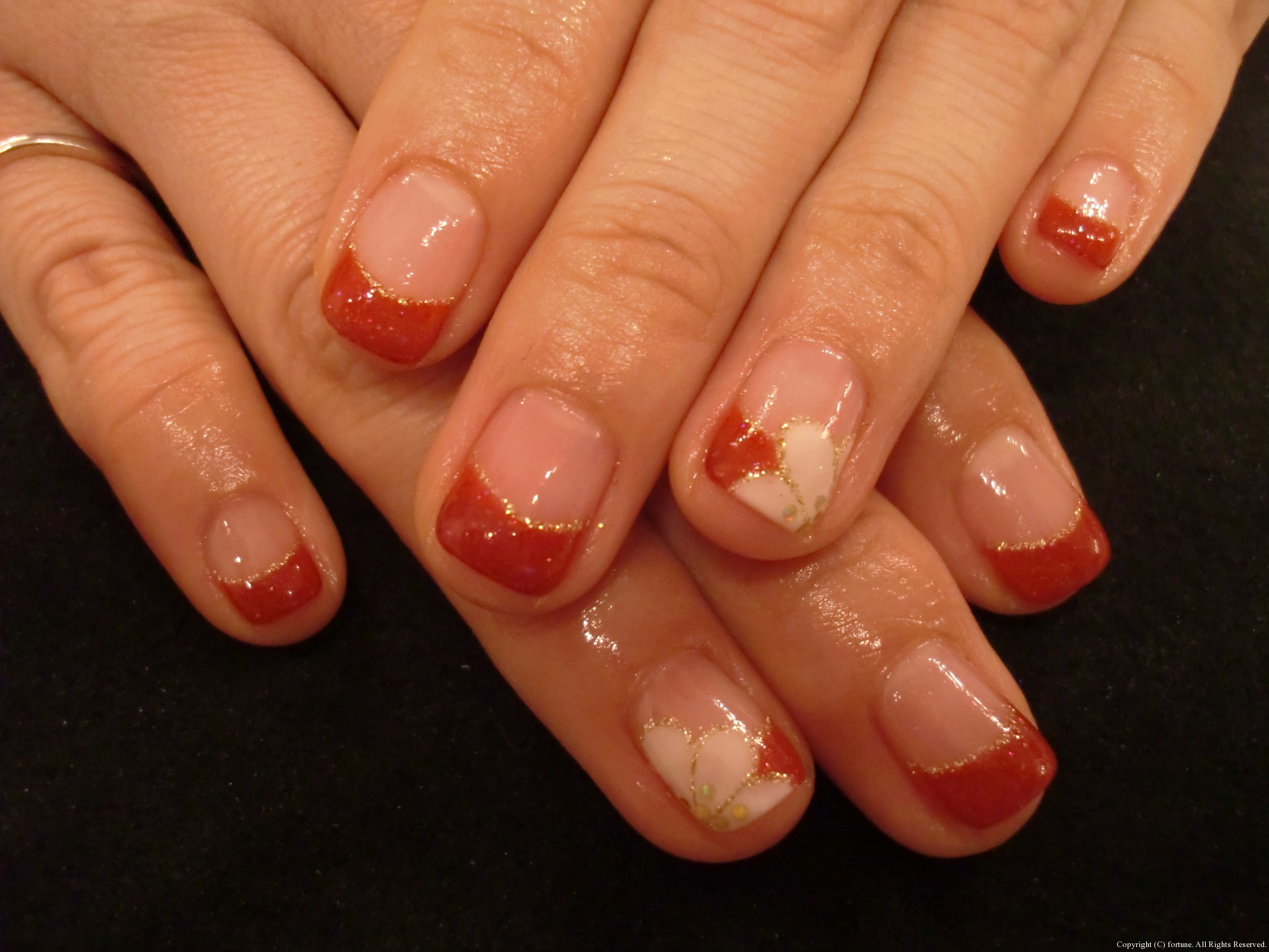 赤フレンチに白いお花は華やかなのでXmasもお正月にもいいですね☆