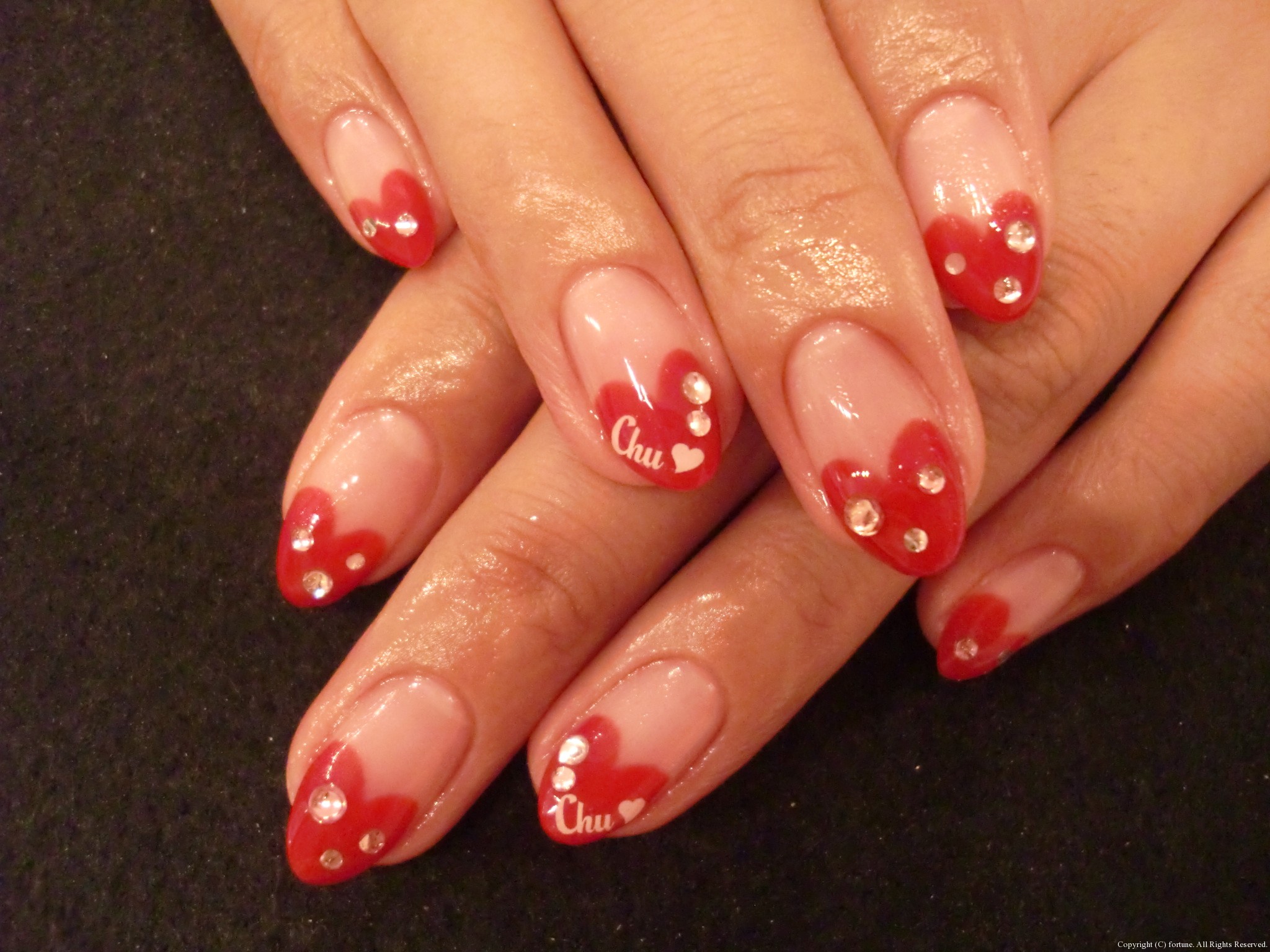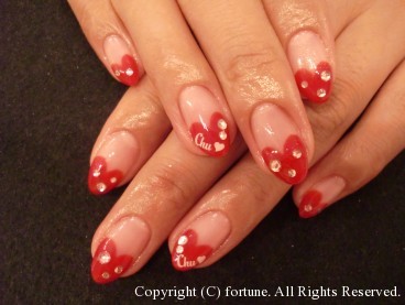 赤のハートフレンチにストーンを♥