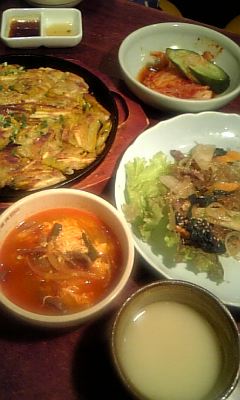 オジャンドン 今日は仲間と共に新中野にある、芸人ご用達の韓国料理店 オジャンドンへ!店に入るなりピン芸人の土○氏に遭遇! やはり中野は芸人の街ですな〜 チャプチェとユッケジャンスープ 、レバ刺にマッコリと、 めちゃめちゃ美味しくって、食べ過ぎちゃいました…。 お勧めされた、カボチャのチヂミも初めてな感じで美味で した〜♪何よりも、仲間で楽しい食事が最高に幸せですよぉ〜 終電ギリギリまでガールズトーク炸裂で話足りなくって…。 こりゃまた近々集合ですな!! JUN