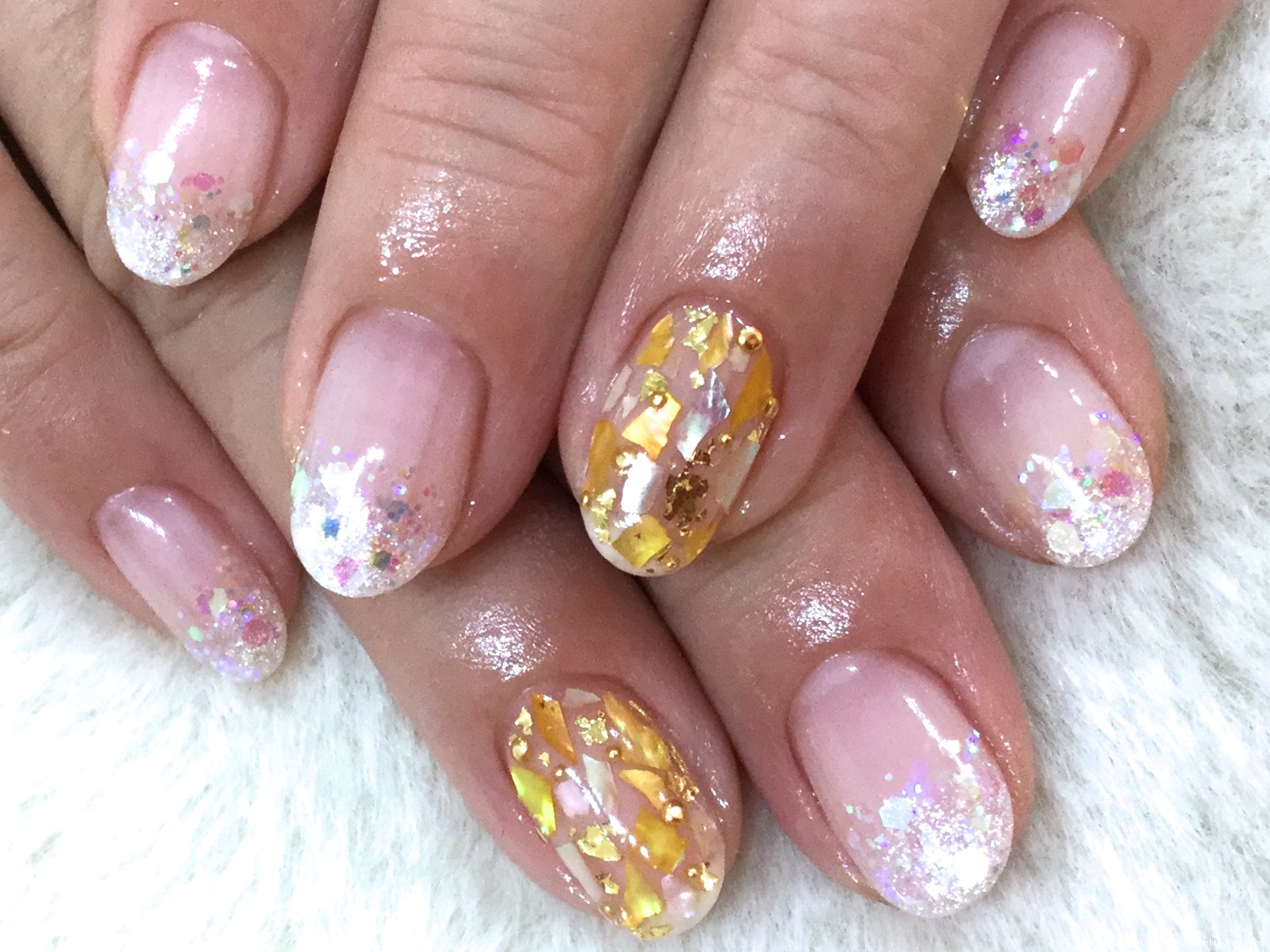 綺麗な水色グラデーション♬キラキラビジュー♡
