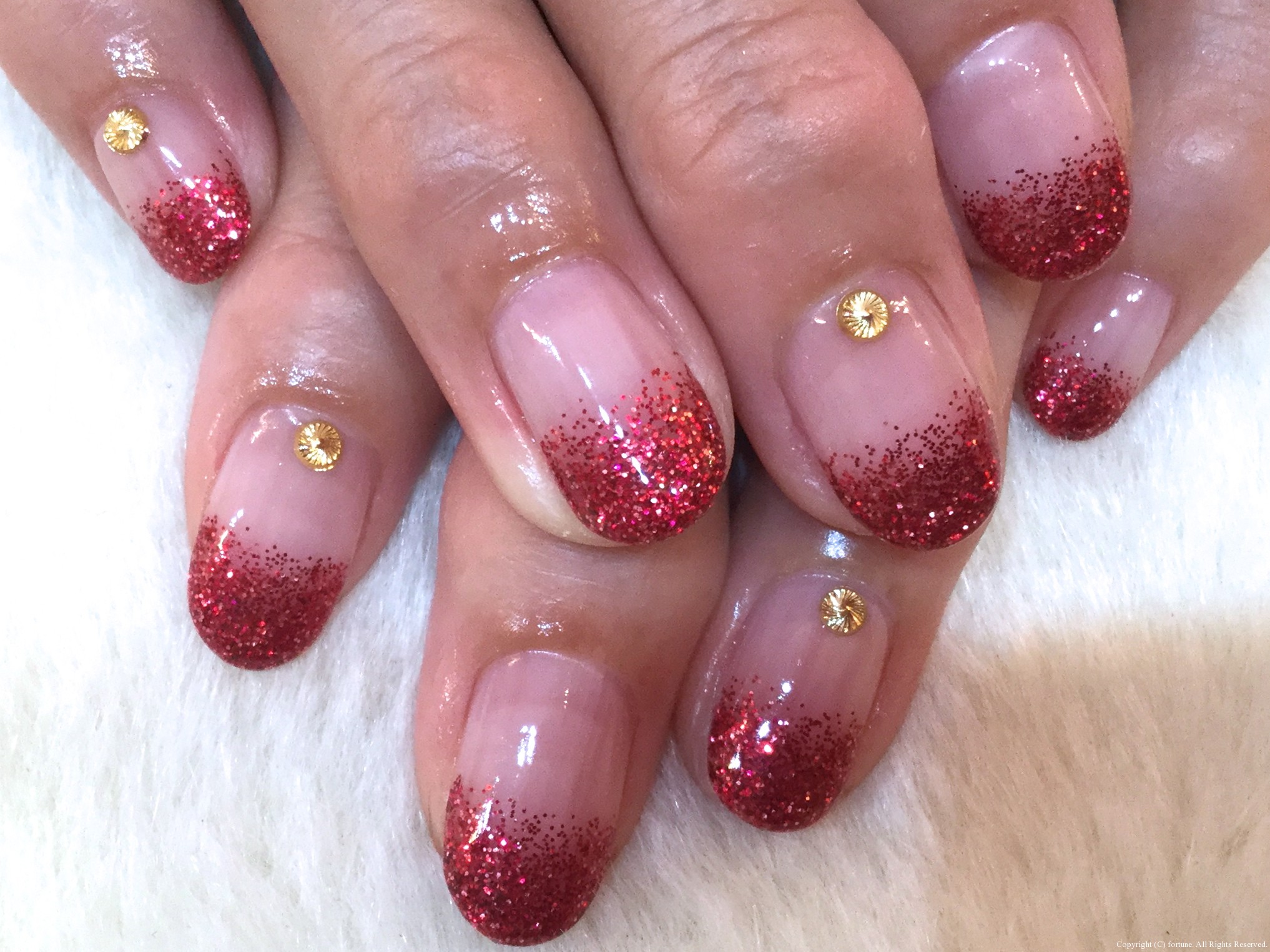 パールピンクのキレイめカラーに、1本ゴージャスストーングラデ♡